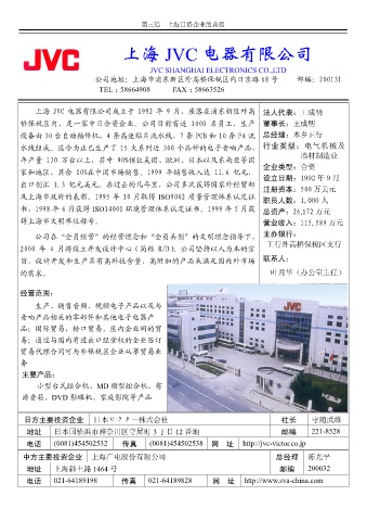 上海 JVC 电器有限公司成立于 1992 年 9 月 座落在浦东新区外高 法人代表 王成明