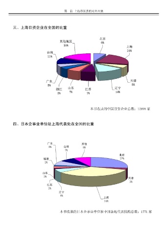 第一篇 上海市区县的对外开放 三 上海日资企业在全国的比重 本书收录的中国日资企业总数 12898 家 四 日本企事业单位驻上海代表处在全国的比重 本书收录的日本企事业单位驻中国各地代表机构总数 1771 家