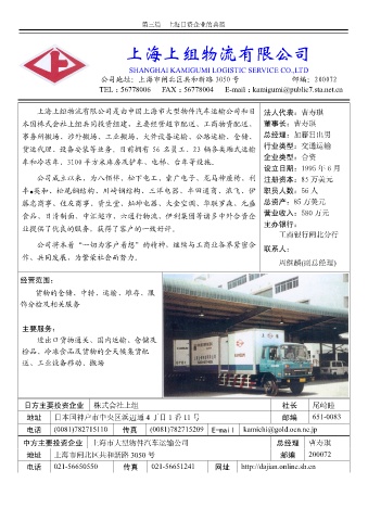 上海上组物流有限公司是由中国上海市大型物件汽车运输公司和日 法人代表 曹寿琪