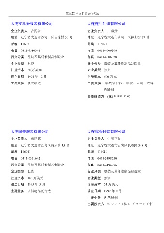 行业分类 服装及其纤维制品制造业 传真 0411-4606328