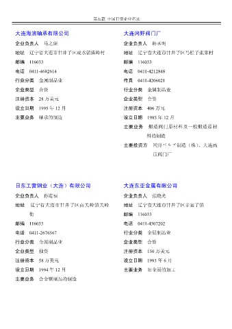 行业分类 金属制品业 传真 0411-4206021