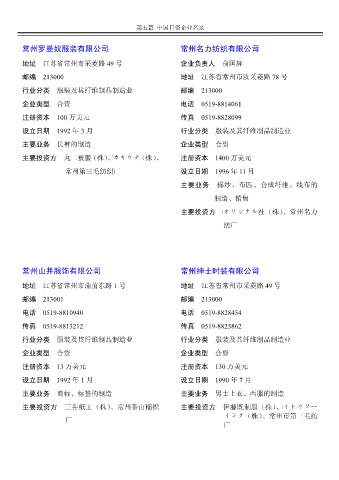 行业分类 服装及其纤维制品制造业 邮编 213000