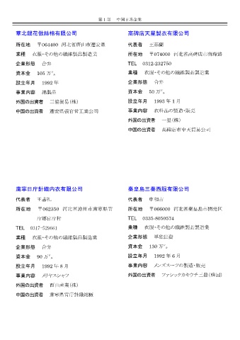 中国の出資者 遷安県張官営工業公司 事業内容 衣料品の製造・販売