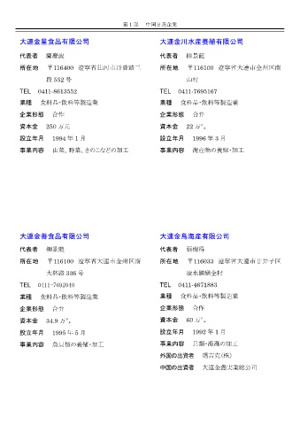所在地 〒116400 遼寧省荘河市丹普路三 所在地 〒116100 遼寧省大連市金州区南