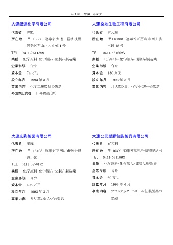 所在地 〒116600 遼寧省大連市経済技術 所在地 〒116300 遼寧省瓦房店市南共済