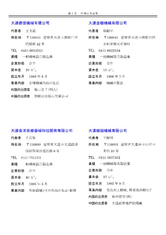 所在地 〒116600 遼寧省大連市大連経済 所在地 〒116001 遼寧省大連市中山区中