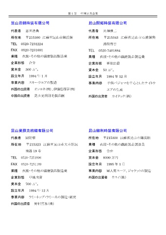 所在地 〒215323 江蘇省昆山市大市鎮昆 業種 衣服・その他の繊維製品製造業