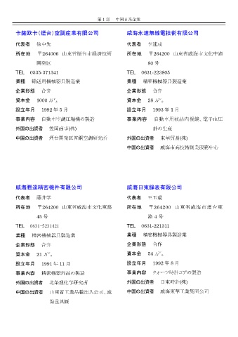 所在地 〒264006 山東省煙台市経済技術 所在地 〒264200 山東省威海市文化中路