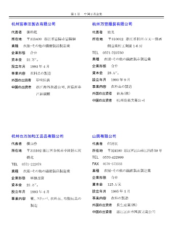 中国の出資者 浙江海外旅遊公司、富陽富春 事業内容 衣料品の製造