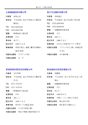 所在地 〒315000 浙江省寧波市小港経済 所在地 〒314000 浙江省嘉興市四号橋
