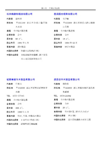 外国の出資者 日本竹材(香港)(株) 中国の出資者 遂昌県焦灘郷木材加工厰