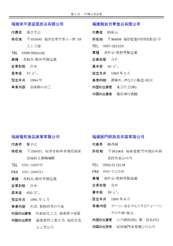 中国の出資者 福建省軽工業公司、福建省食 外国の出資者 小谷穀粉(株)、第一貿易(株)