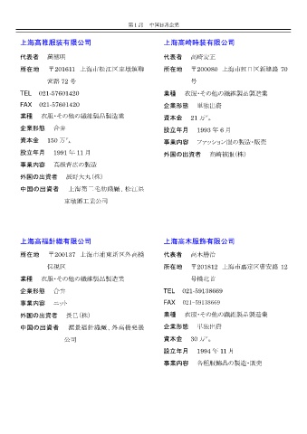 設立年月 1991 年 11 月 外国の出資者 高崎被服(株)
