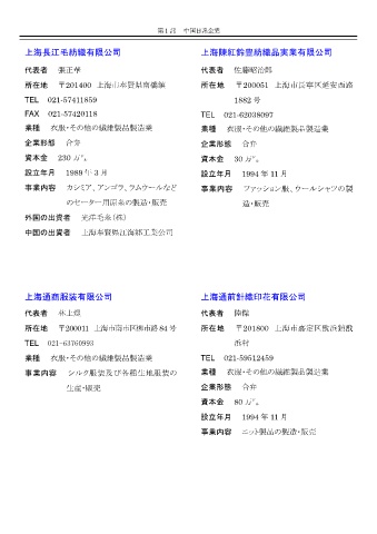 所在地 〒201400 上海市奉賢県南橋鎮 所在地 〒200051 上海市長寧区延安西路