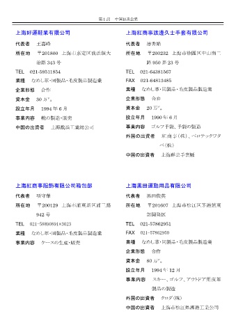 中国の出資者 上海戬浜工業総公司 事業内容 ゴルフ手袋、手袋の製造