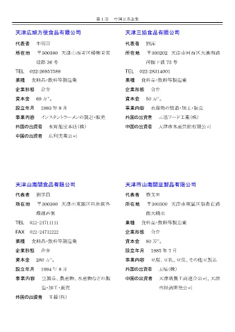 事業内容 豆製品、農産物、水産物などの製 中国の出資者 天津新農工商連合公司、天津